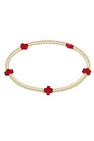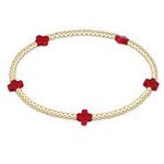 enewton Signature Cross Small Gold Pattern 2mm Bead Bracelet | Red