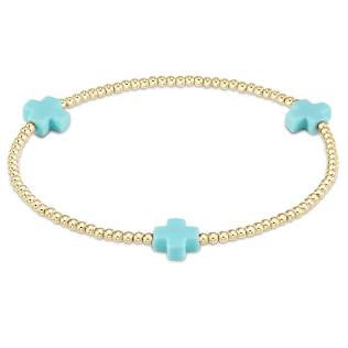 enewton Signature Cross Small Gold Pattern 2mm Bead Bracelet | Turquoise