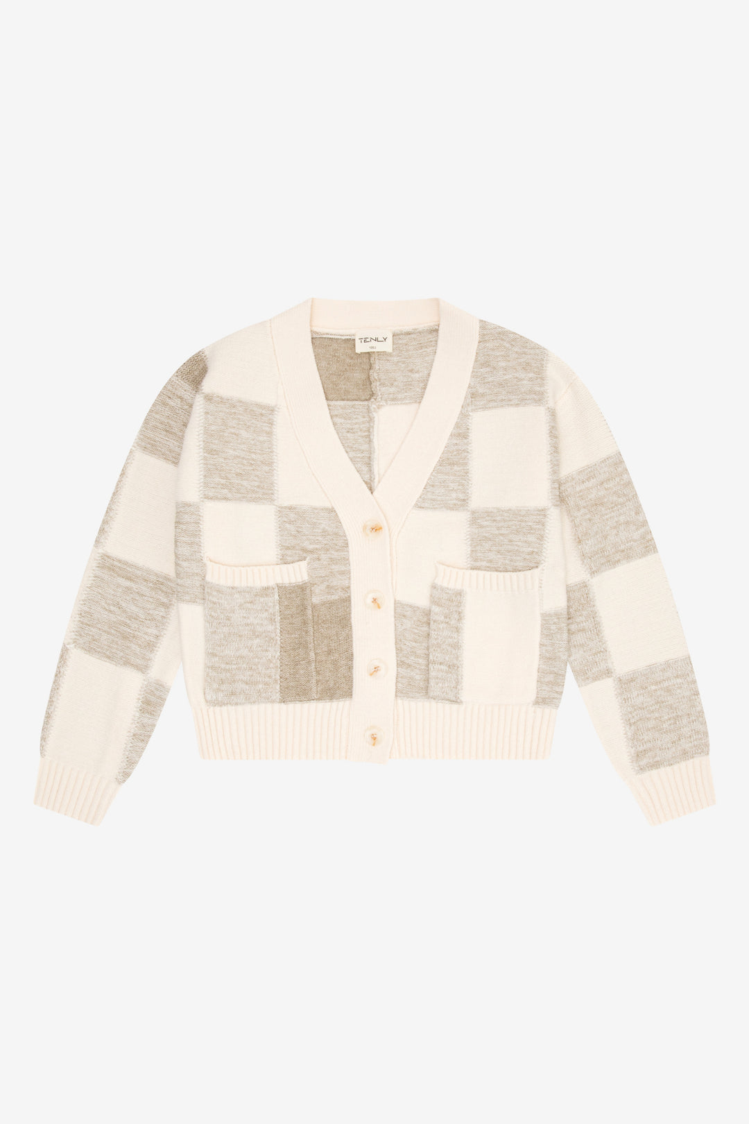 Add a playful twist to everyday neutrals with our Checkered Cardigan in Oatmeal, perfect for tweens. This timeless neutral cardigan is the perfect layering piece for cozy days and polished looks!